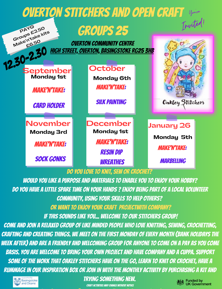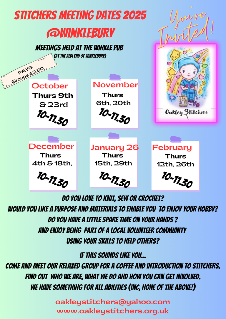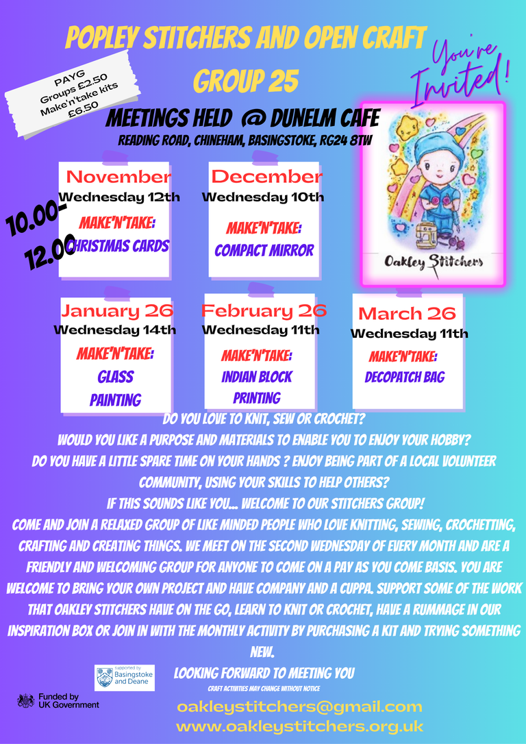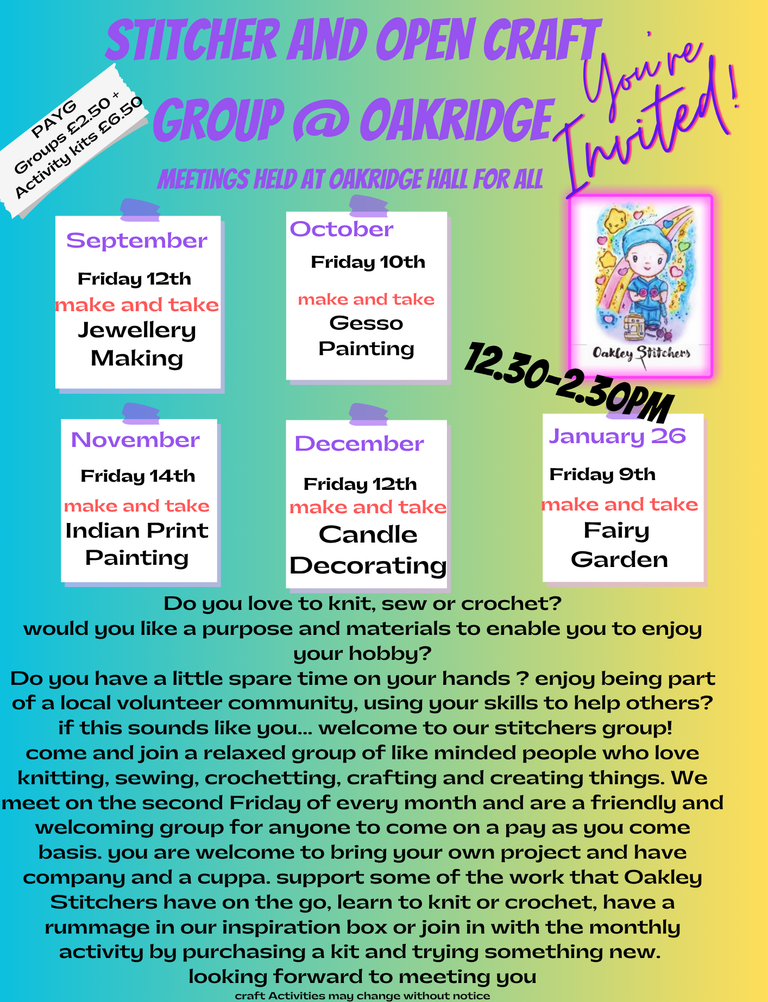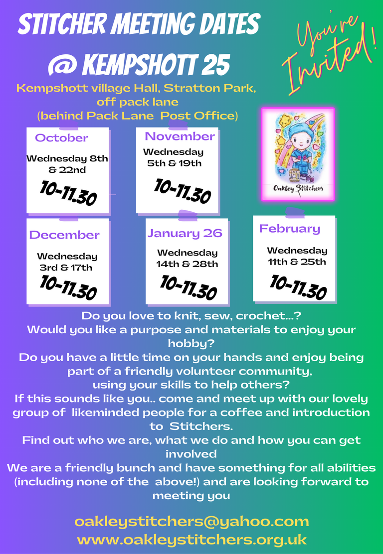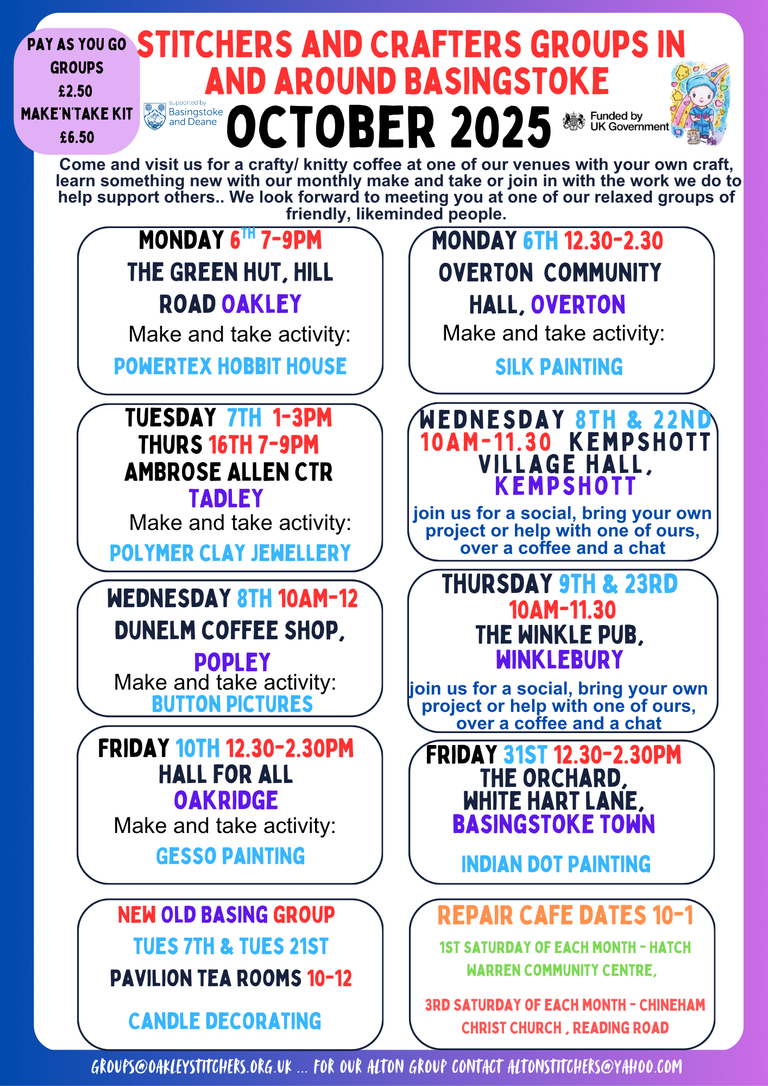Our current stitchers groups etc. can also be found on our facebook page @OakleyStitchersCIC